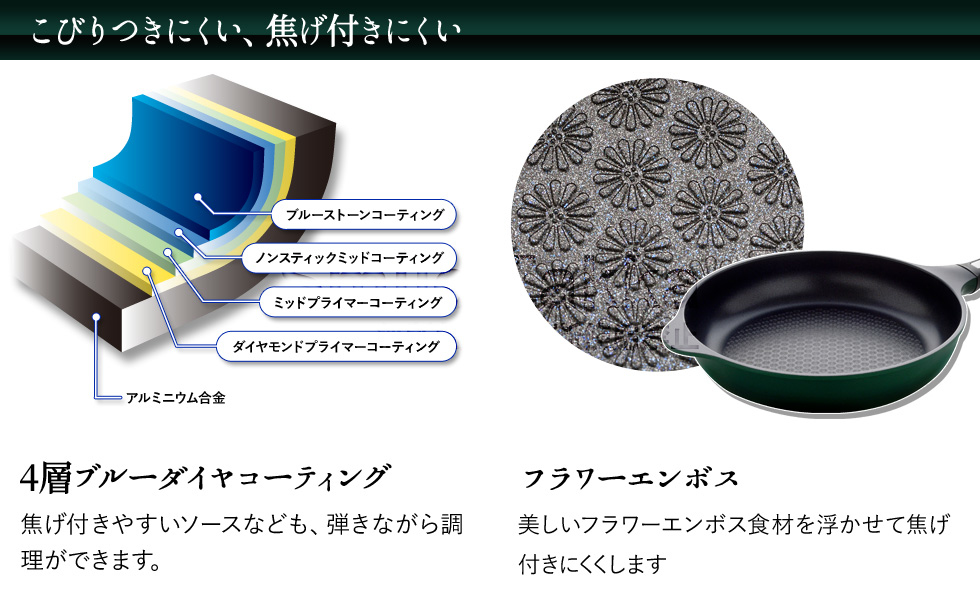 • 特殊四層藍寶石塗層設計,較同類塗層型產品更不易粘底和燒焦