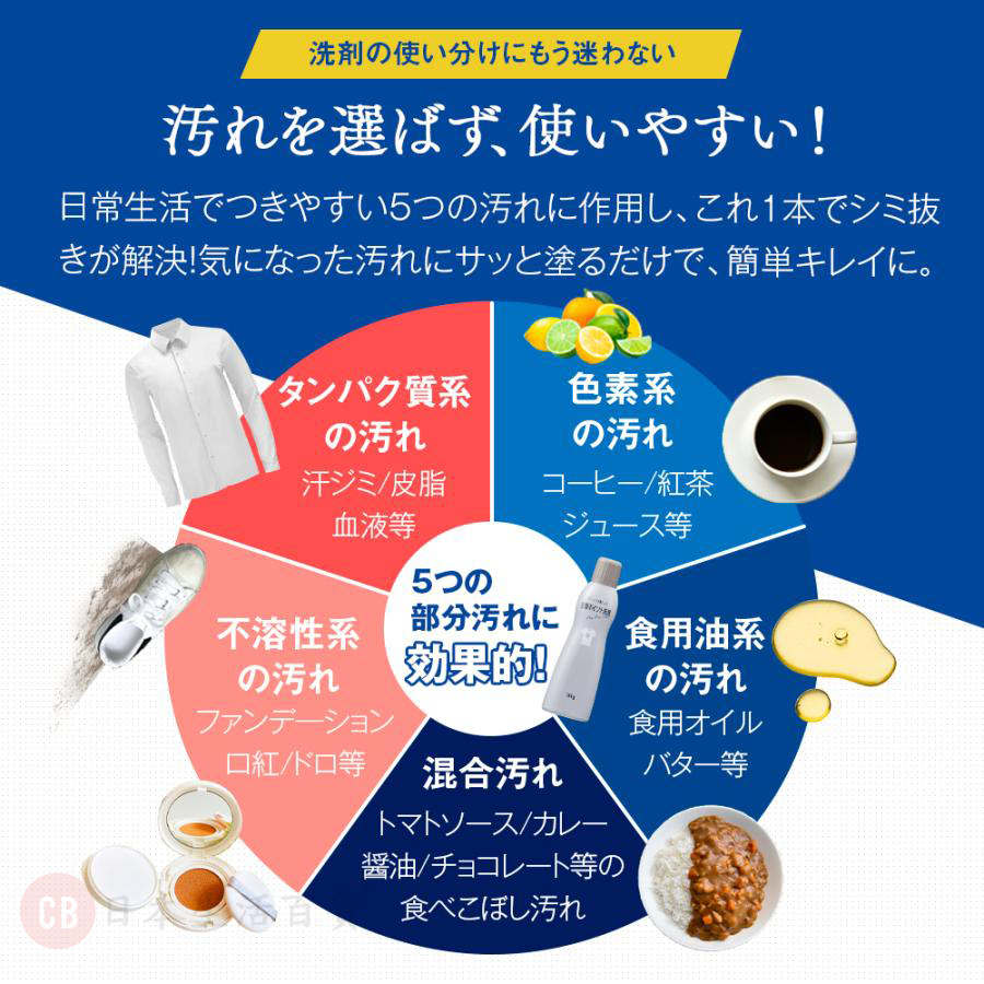 -能去除汗漬、皮脂、化妝品、泥垢、食物等5種最常見的污漬