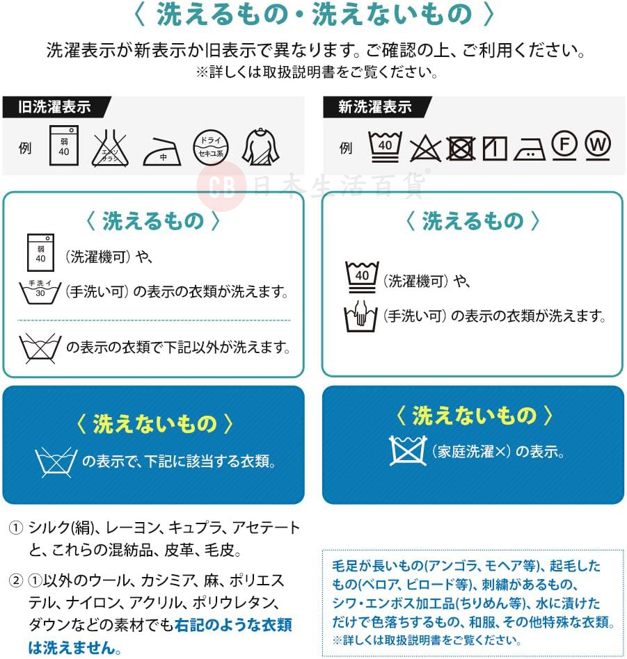 ●有些標有水洗×標誌的衣物無法洗滌,請仔細查看盒內的使用說明書後才進行使用