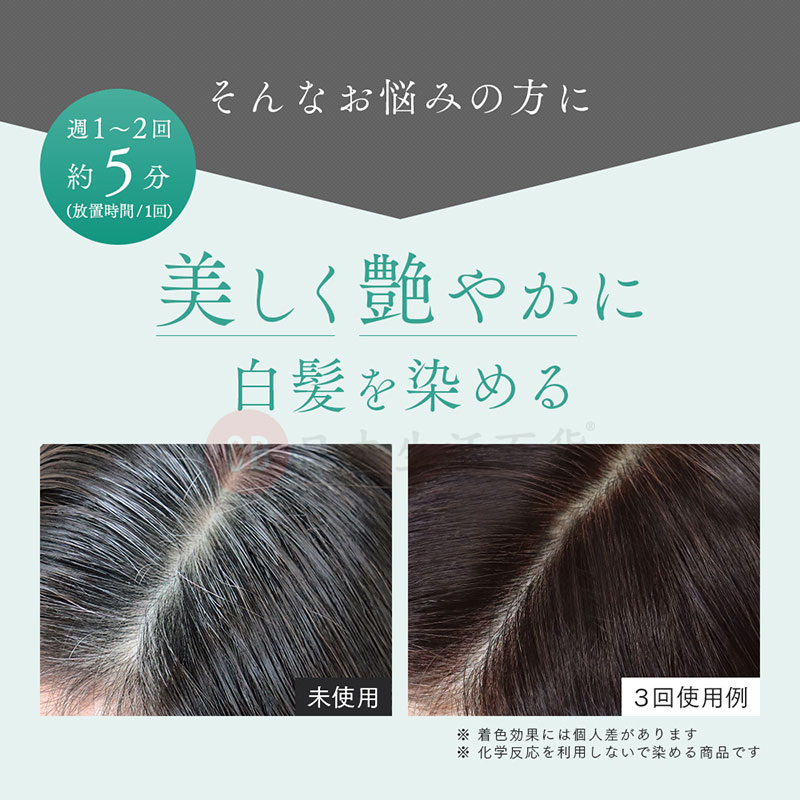 • 每週使用,頭髮逐漸上色,髮色天然,旁人難以看出