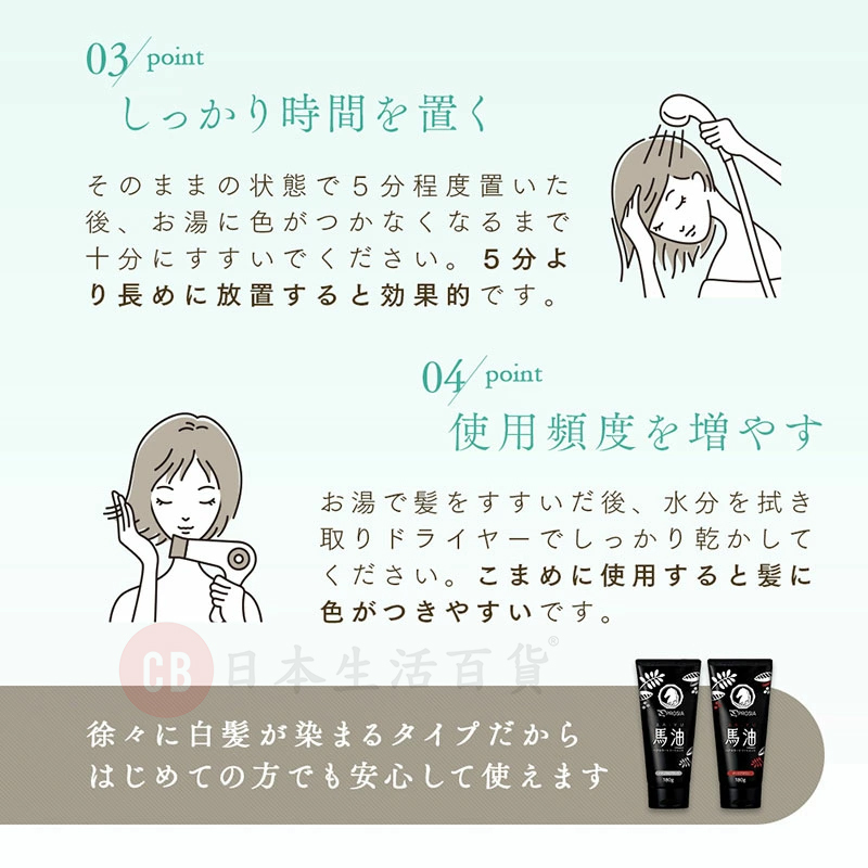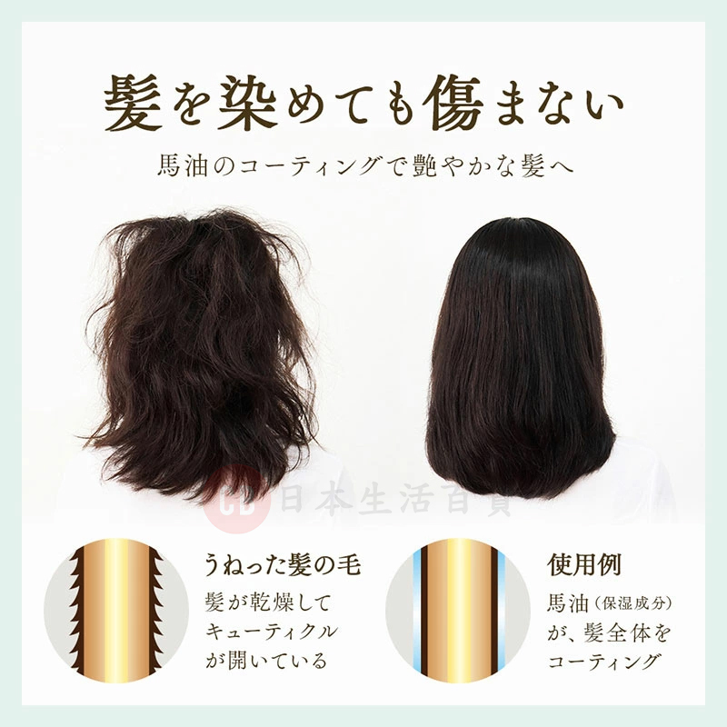 • 用最上等日本馬油製成,保濕效果出色,且容易被頭髮吸收