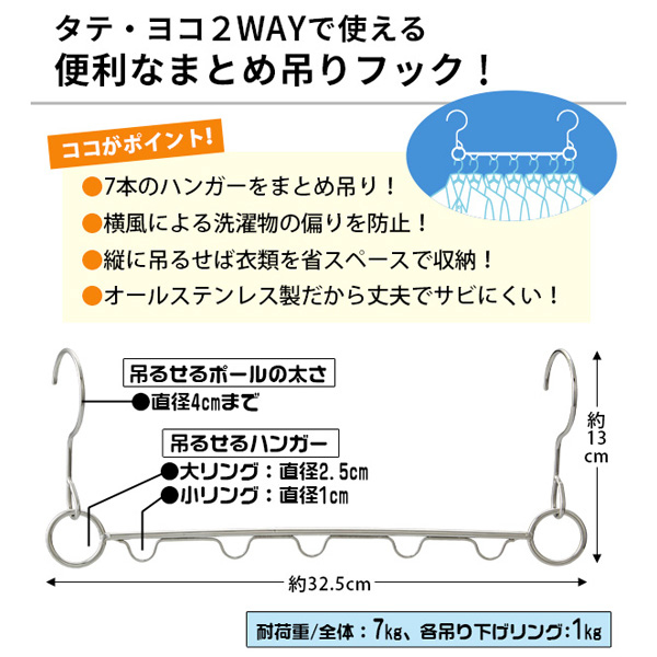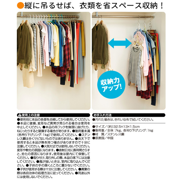 • 只需用約2個傳統衣架的位置,就可以放置7件衣物