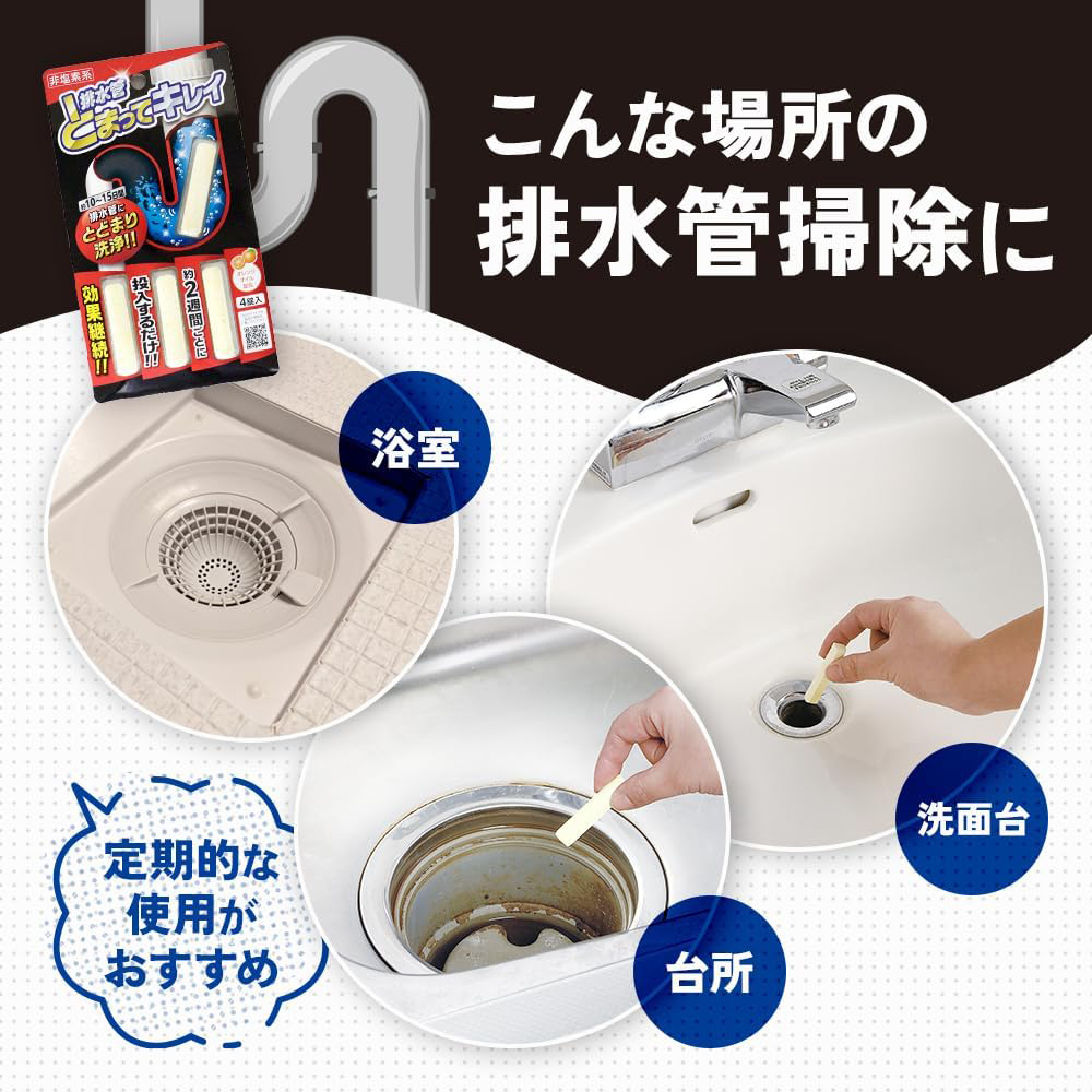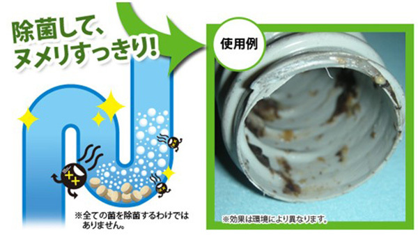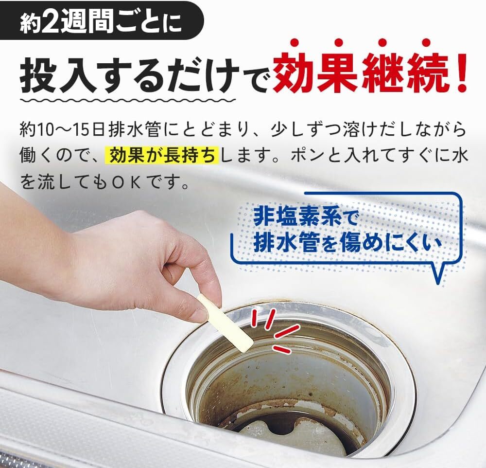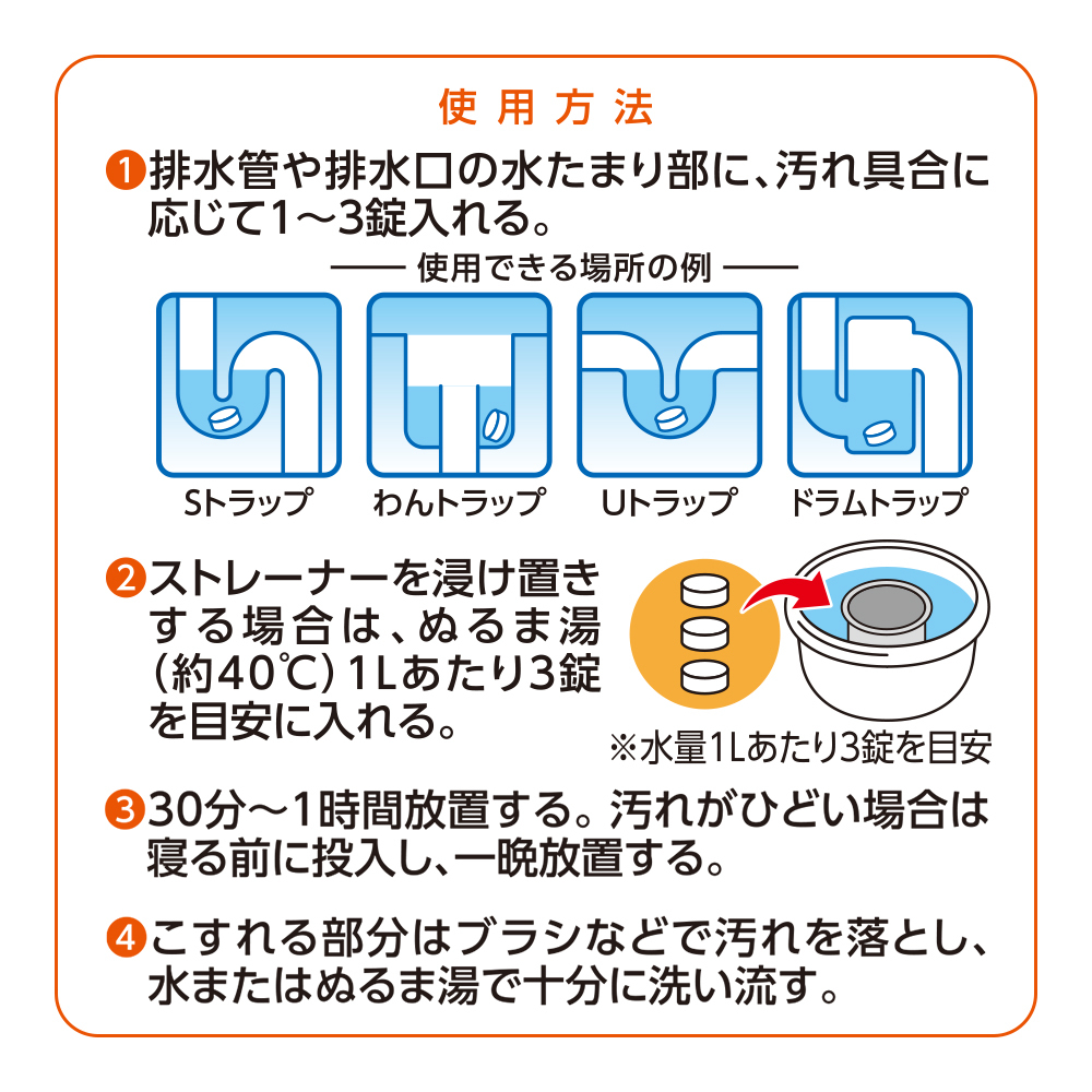 (若去水口空隙太小,可先移開去水隔 或 將通渠丸分割至適合大小再入去水口)(如淤塞情況嚴重,可使用雙倍份量 (即3-4粒),並等待8小時再用暖水沖淨即可))
