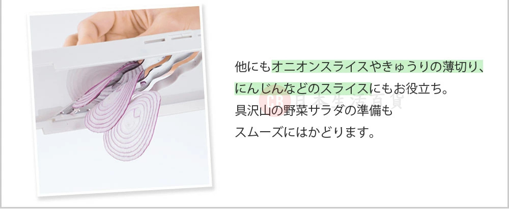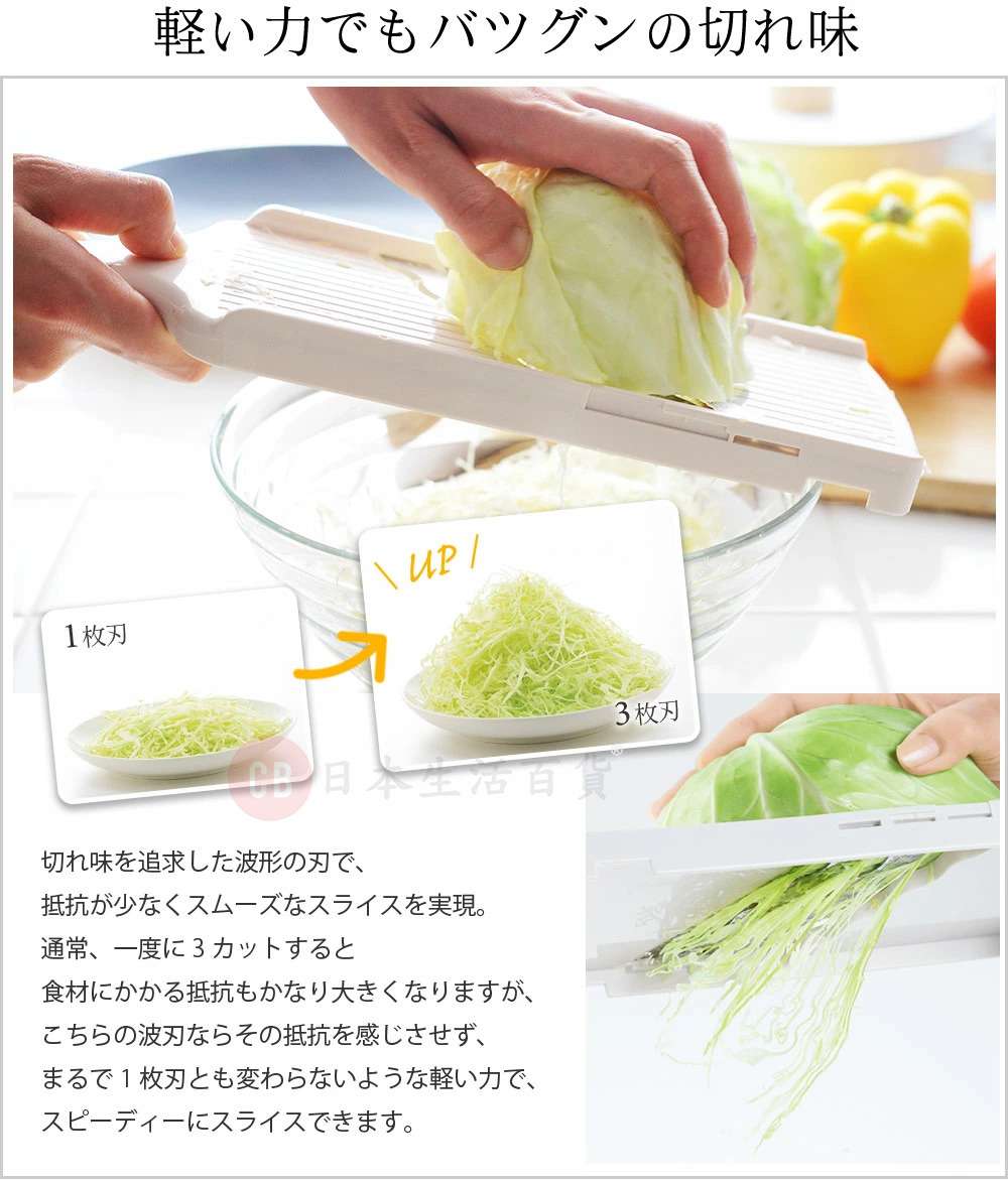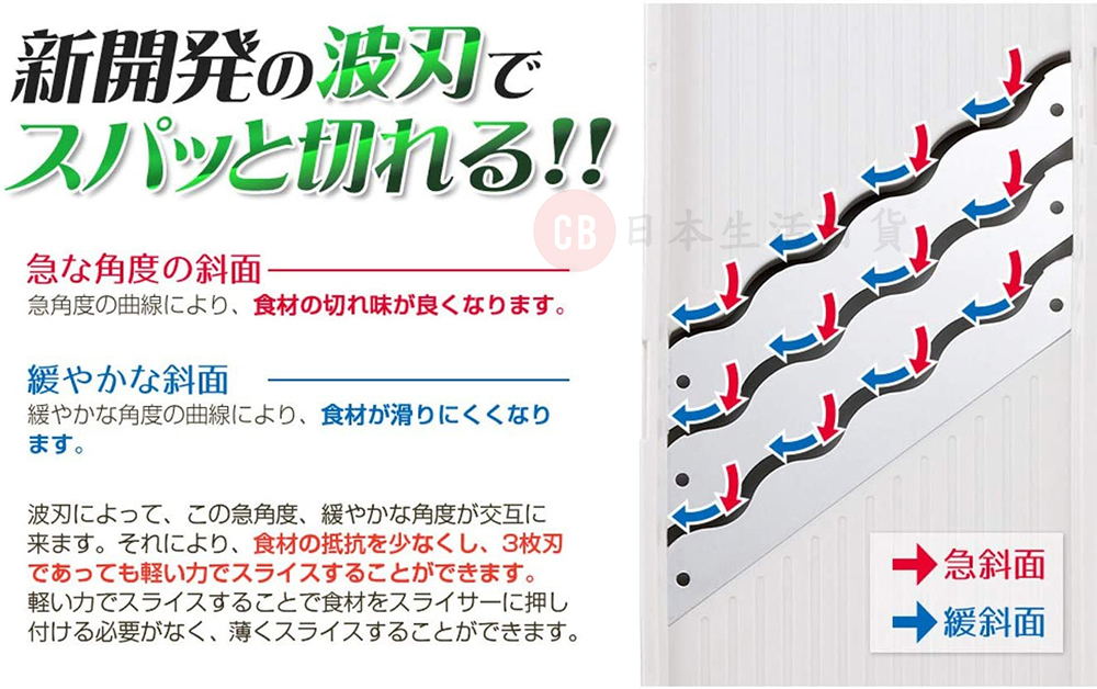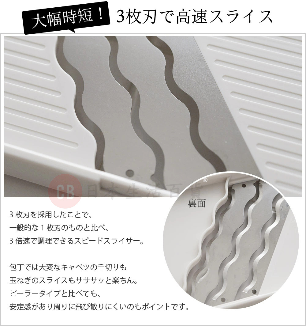 • 特製波紋狀刀片,使用時可快速切片,阻力小
