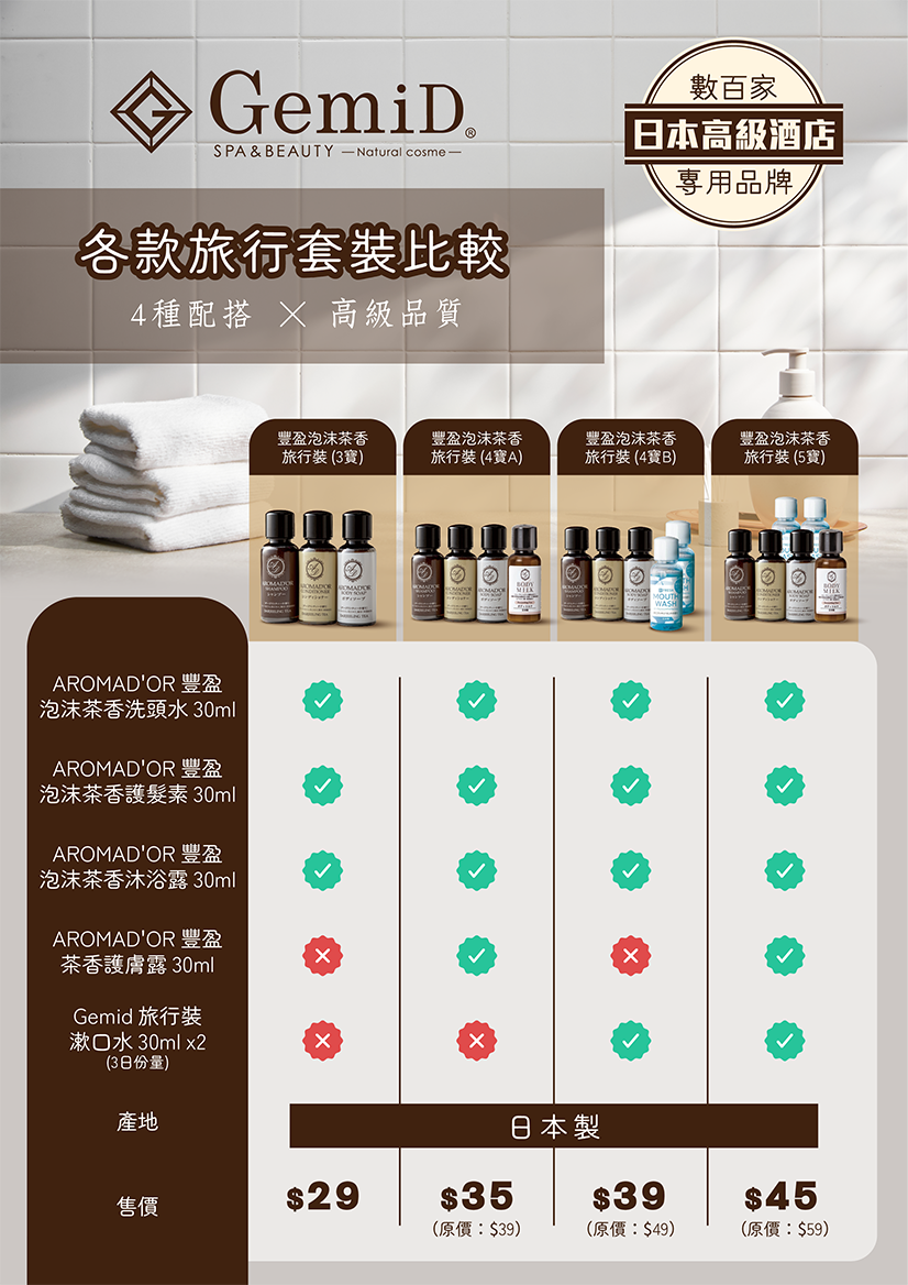 凡購買AROMAD'OR - 豐盈泡沫茶香旅行套裝 (包括3寶、4寶A、4寶B 或5寶)的顧客,