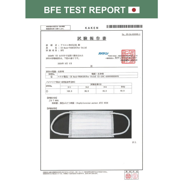 • BFE >99% (細菌過濾效率) – 於日本進行測試
