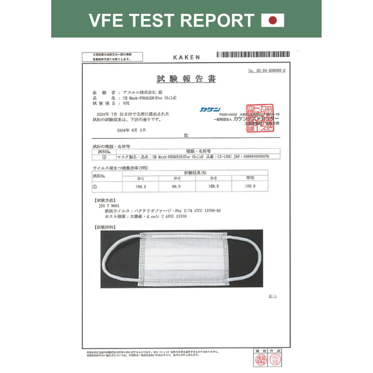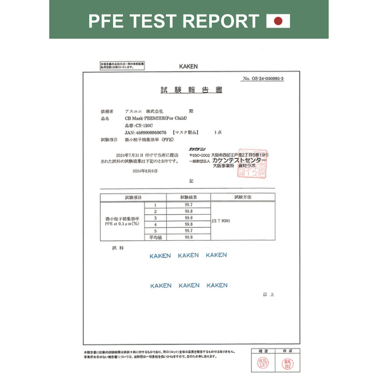 • PFE >99% (懸浮微粒過濾率) – 於日本進行測試