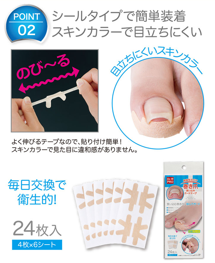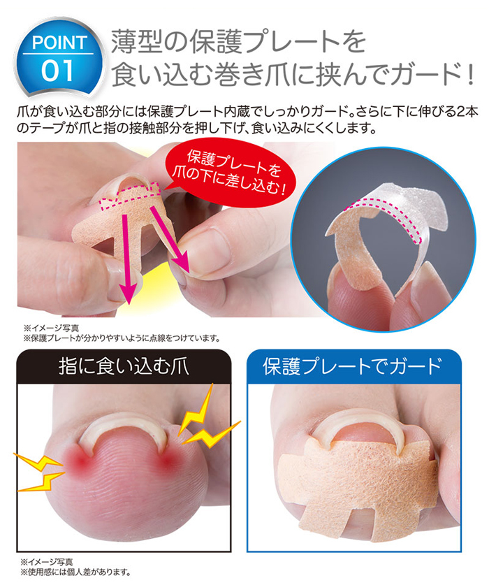 4. 在皮膚與腳甲之間的位置插入保護板並同時粘貼左右的膠帶
