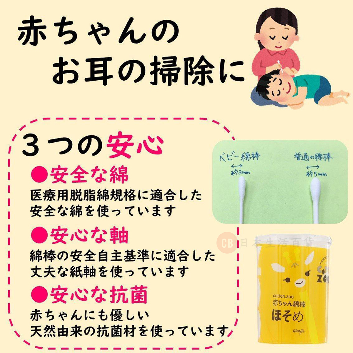 - 棉球直徑約3mm,適合幼兒使用