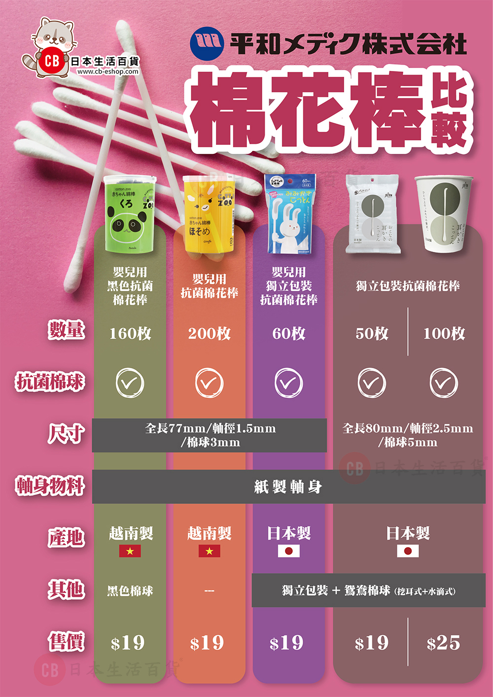- 日本最大的棉花棒生產商,自1965年起專注於製造棉花棒