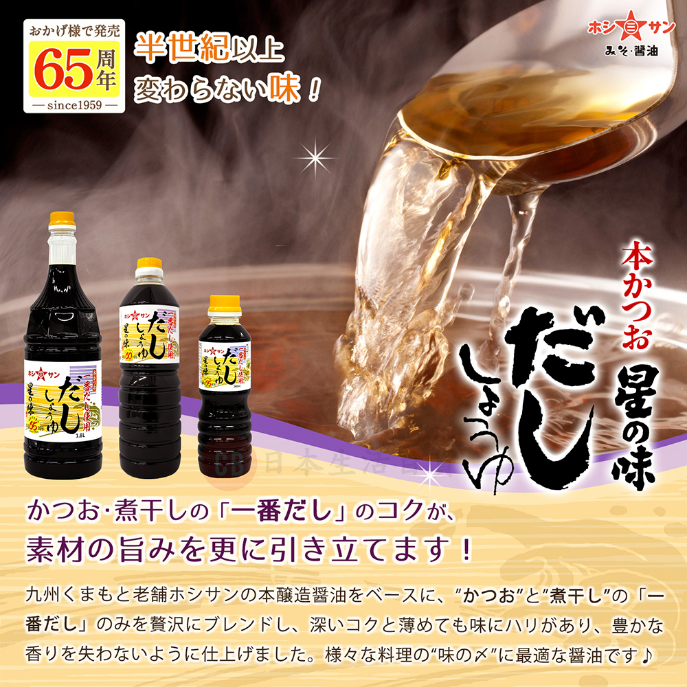 「ホシサン株式会社」成立超過120年,工匠們一直以傳承百年的傳統技藝追求最高品質,產品多年來獲獎數十次,並獲HACCP(第8級) 和 ISO9001認證,是九州和熊本地區最注名的醬油、味噌和調味料生產商。最出名的產品包括九州醬油、高湯醬油和鹽麴等等