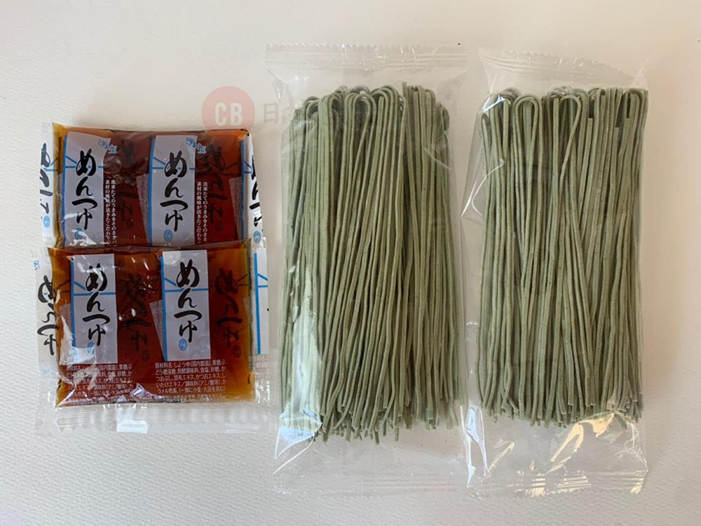 烏冬:小麥粉(日本產)、埃及皇帝菜(產自廣島縣)、小麥蛋白粉、鹽、植物油/色素(小球藻粉)、酒精(含小麥和大豆)