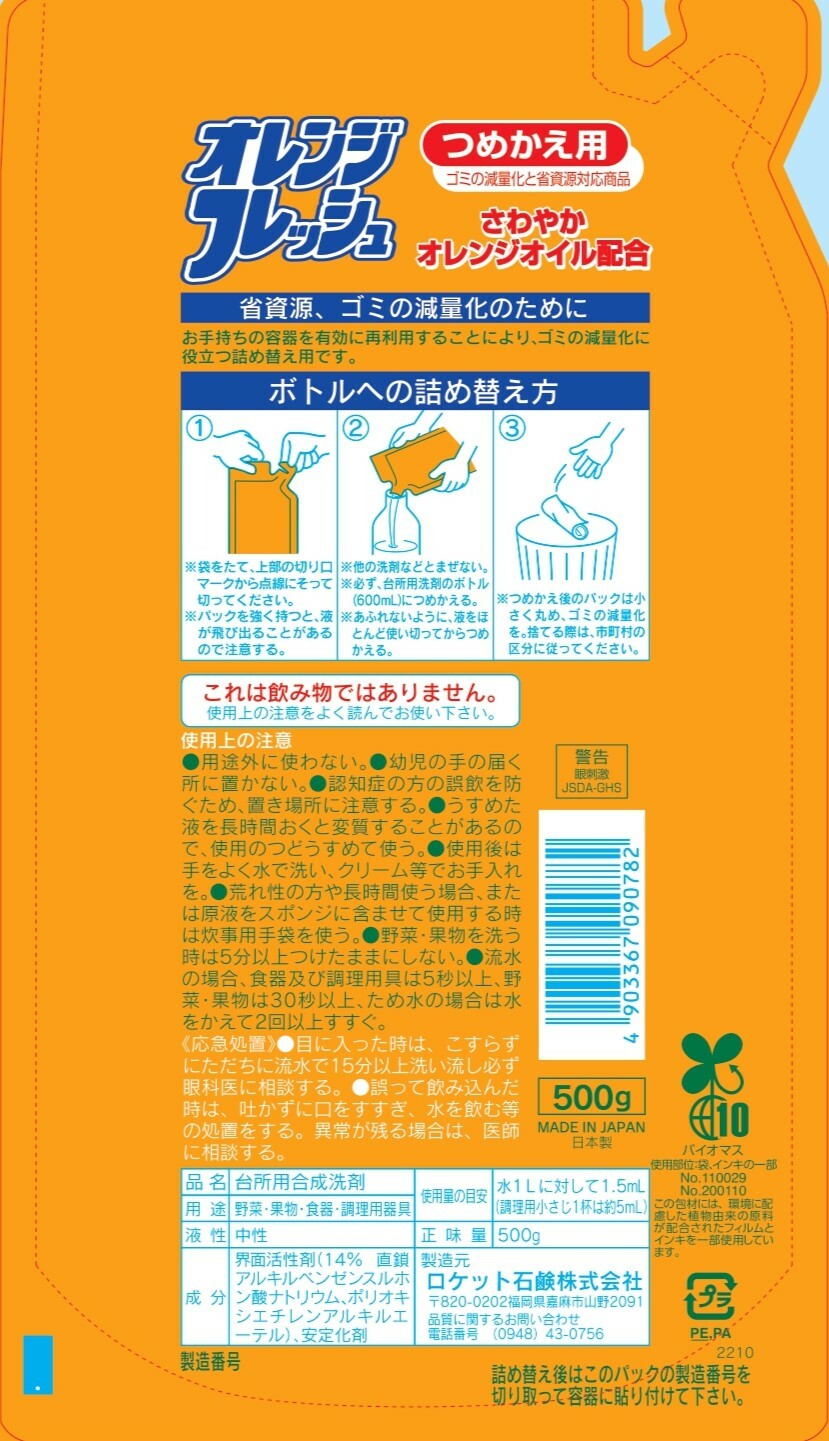 【自取優惠價】Rocket — 護手洗潔精(香橙味) - 補充裝 500g