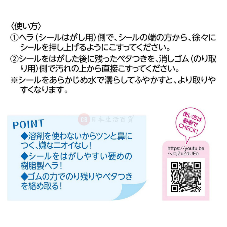 • 能去除貼紙、污漬和黏性殘留物